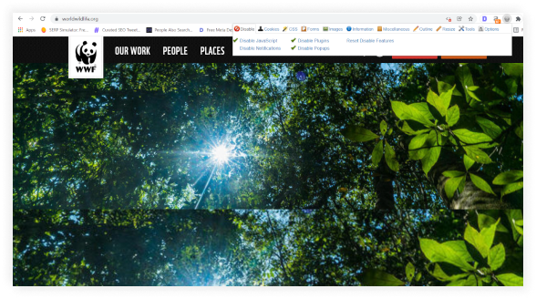 With JavaScript disabled, even the main navigation of the WWF website isn't working. JavaScript increases the carbon footprint of a website greatly since it requires additional processing done on the user's device. It is also very code-heavy.Not to mention the excessive amount of Javascript is a hot topic in the SEO community because it can sometimes make the "life" of the Googlebot harder.